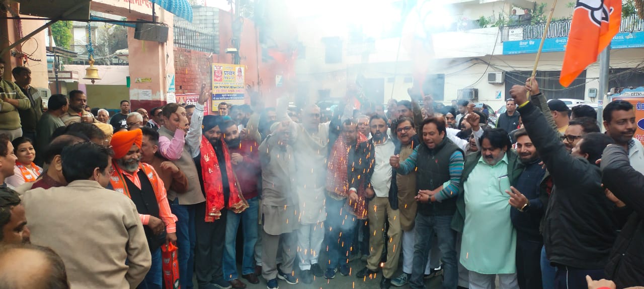 जालंधर( ) : मध्यप्रदेश,छत्तीसगढ़ और राजस्थान में भारतीय जनता पार्टी की विधानसभा चुनाव में प्रचंड भारी जीत होने पर भाजपा कार्यालय सहित अन्य स्थानों पर भाजपा कार्यकर्ताओं ने मिठाई बांटकर जश्न मनाया। इस दौरान उपस्थित भाजपा कार्यकर्ताओं ने ढोल धमाकों के साथ आतिशबाजी भी की। भाजपा जिलाध्यक्ष सुशील शर्मा ने जिला पदाधिकारीयों और कार्यकताओं और भाजपा समर्थको के साथ भाजपा की जीत की खुशी मनाई। इस दौरान उन्होंने एक दूसरे का मुंह मीठा कराया।