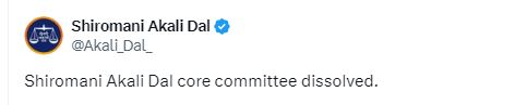 इस कोर कमेटी में प्रो. प्रेम सिंह चंदूमाजरा और बीबी जागीर कौर का नाम प्रमुख रूप से शामिल है। इन बागियों द्वारा अकाली दल अध्यक्ष के इस्तीफे की मांग की जा रही है और श्री अकाल तख्त साहिब को एक शिकायत भी सौंपी गई है। जिसके बाद खुद अकाली दल के अध्यक्ष सुखबीर बादल ने ट्वीट कर कहा कि वह एक विनम्र सिख के तौर पर श्री अकाल तख्त पर नतमस्तक होंगे। सुखबीर बादल ने कोर कमेटी को भंग करने का फैसला ऐसे समय में लिया है जब उन्हें अभी अकाल तख्त साहिब जाना है। अब देखना होगा कि अकाली दल की नई कोर कमेटी का गठन कब होता है और इसमें किसे जगह मिलती है।