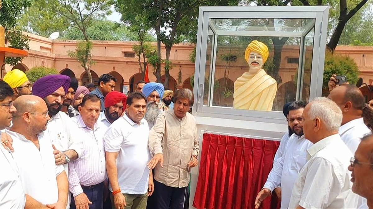 मंत्री Brahm Shankar Jimpa ने किया ओम जय जगदीश हरे आरती के रचयिता Pandit Shraddha Ram फिल्लौरी की प्रतिमा का उद्घाटन किया।