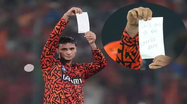 अपना पहला आईपीएल शतक बनाने के बाद, सलामी बल्लेबाज ने अपना बल्ला उठाया और फिर एक नोट निकाला, जिस पर यह ऑरेंज आर्मी के लिए है लिखा था।