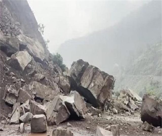 चैक पोस्ट नंबर 6 से पावर हाऊस व जम्मू-कश्मीर जाने वाले मुख्य मार्ग पर लैंड स्लाइडिंग से रास्ता बंद