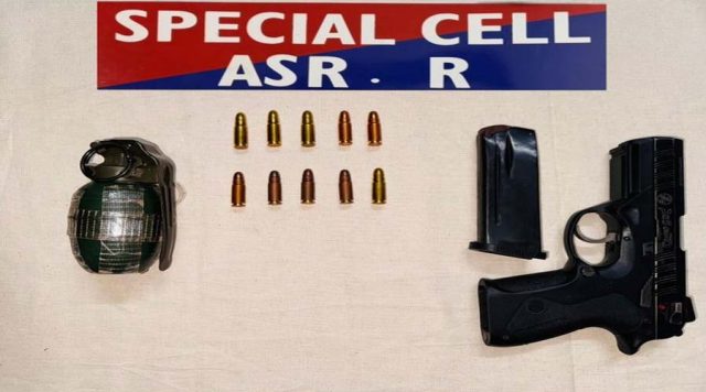 अमृतसर ग्रामीण पुलिस ने केंद्रीय एजेंसियों के सहयोग से चलाए गए एक खुफिया अभियान में बड़ी कामयाबी हासिल की है। पुलिस ने अमृतसर के पंडोरी गांव निवासी मलकीत सिंह को गिरफ्तार किया है। आपको बता दें कि तलाशी के दौरान उसके पास से एक हैंड ग्रेनेड, एक .30 बोर पिस्तौल (Px5) और 10 ज़िंदा कारतूस बरामद किए गए।
