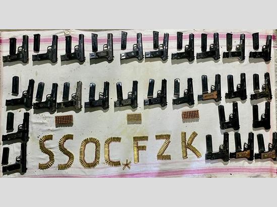 मुख्यमंत्री भगवंत सिंह मान के निर्देशों के अनुसार पंजाब को एक सुरक्षित राज्य बनाने के लिए चल रहे अभियान के बीच एक बड़ी सफलता हासिल करते हुए, काउंटर इंटेलिजेंस (सीआई) फिरोजपुर ने राज्य विशेष अभियान प्रकोष्ठ (एसएसओसी) फाजिल्का के साथ एक संयुक्त अभियान में भारत-पाक अंतर्राष्ट्रीय सीमा के पास सीमा पार से संगठित हथियार तस्करी मॉड्यूल का भंडाफोड़ किया है। इस दौरान दो हथियार आपूर्तिकर्ताओं को गिरफ्तार किया गया और उनके कब्जे से 27 अत्याधुनिक .30 बोर पिस्तौल और 470 जिंदा कारतूस बरामद किए गए। यह जानकारी पंजाब के पुलिस महानिदेशक (डीजीपी) गौरव यादव ने गुरुवार को दी।