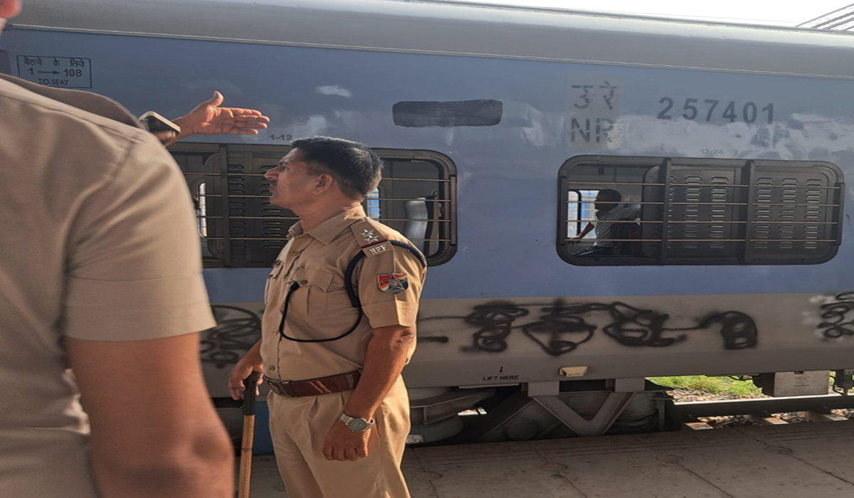 इस वक्त की बड़ी खबर जालंधर रेलवे स्टेशन से आ रही है, जहां आज सुबह हरिद्वार जाने वाली ट्रेन संख्या 12054 के कोच संख्या NR 257401 में भारत विरोधी नारा लिखा मिला, जिससे रेलवे प्रशासन में हड़कंप मच गया। C-62 के गेटमैन रंजीत कुमार ने तुरंत इसकी सूचना अधिकारियों को दी।