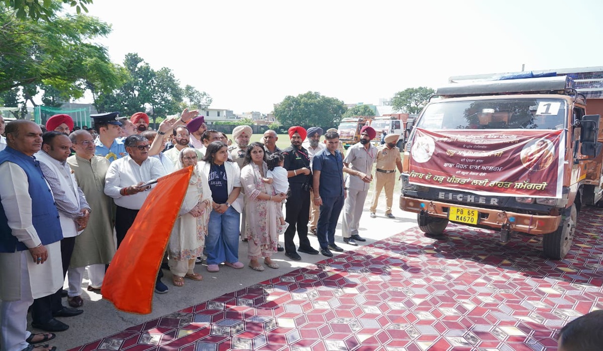 पंजाब के राज्यपाल गुलाब चंद कटारिया ने शनिवार को जालंधर स्थित बाबा मोहन दास आश्रम से बाढ़ प्रभावित परिवारों के लिए राहत सामग्री के सात ट्रकों को हरी झंडी दिखाई।