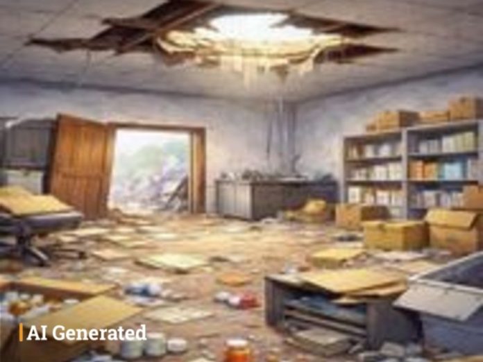 चोरों ने गोदाम की छत तोड़कर प्रवेश किया और पहली मंजिल से पुराना रिकॉर्ड, फर्नीचर सहित अन्य कीमती सामान चुरा लिया। चोर बाथरूम में लगी फिटिंग भी उखाड़कर ले गए।