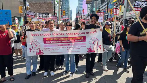 वर्क परमिट बढ़ाने की मांग को लेकर कनाडा के विनिपेग में प्रदर्शन करते स्टूडेंट्स।