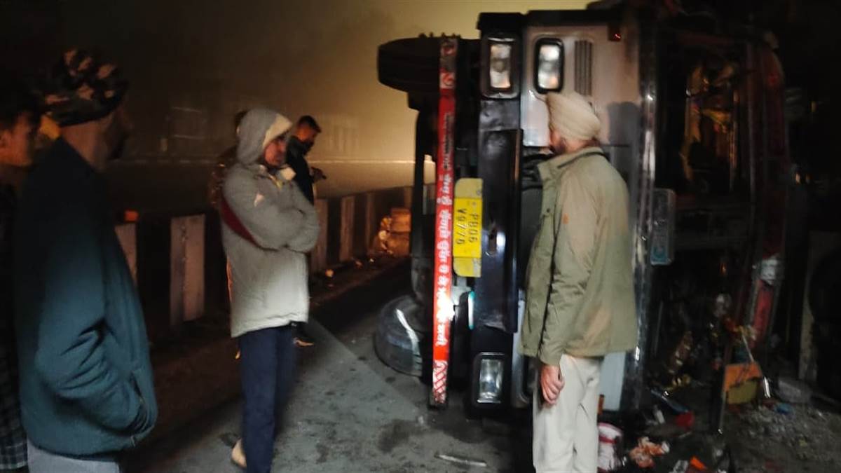 ਜਲੰਧਰ ਪਠਾਨਕੋਟ ਨੈਸ਼ਨਲ ਹਾਈਵੇ ’ਤੇ ਸਥਿਤ ਅੱਡਾ ਕਾਲਾ ਬੱਕਰਾ ਵਿਖੇ ਇੱਕ ਟਰੱਕ ਜੋ ਕਿ ਸਿਵਿਲ ਹਸਪਤਾਲ ਕਾਲਾ ਬਕਰਾ ਦੇ ਸਾਹਮਣੇ ਬੇਕਾਬੂ ਹੋ ਕੇ ਡਿਵਾਈਡਰ ਦੇ ਉੱਤੇ ਜਾ ਪਲਟਿਆ