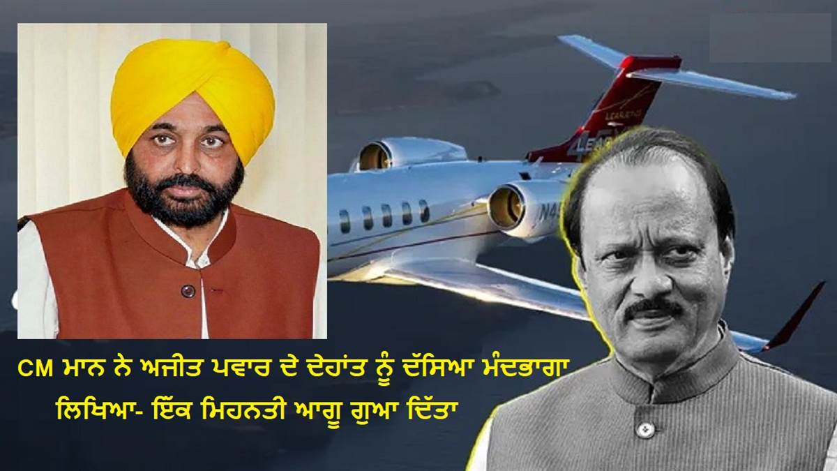 ਉਥੇ ਹੀ ਪੰਜਾਬ ਦੇ ਮੁੱਖ ਮੰਤਰੀ ਭਗਵੰਤ ਮਾਨ ਨੇ ਇਸ ਹਾਦਸੇ ‘ਤੇ ਦੁੱਖ ਪ੍ਰਗਟਾਉਂਦਿਆਂ ਇਕ ਪੋਸਟ ਸਾਂਝੀ ਕੀਤੀ ਹੈ। ਇਸ ਪੋਸਟ ‘ਚ ਭਗਵੰਤ ਮਾਨ ਨੇ ਲਿਖਿਆ ਹੈ, ”ਮਹਾਰਾਸ਼ਟਰ ਦੇ ਬਾਰਾਮਤੀ ‘ਚ ਉੱਪ ਮੁੱਖ ਮੰਤਰੀ ਅਜੀਤ ਪਵਾਰ ਜੀ ਦੇ ਜਹਾਜ਼ ਲੈਂਡਿੰਗ ਦੌਰਾਨ ਕ੍ਰੈਸ਼ ਹੋਣ ਦੀ ਖ਼ਬਰ ਮਿਲੀ ਹੈ। ਧੂੰਏਂ ਅਤੇ ਤਬਾਹੀ ਦੀਆਂ ਤਸਵੀਰਾਂ ਬੇਹੱਦ ਪਰੇਸ਼ਾਨ ਕਰਨ ਵਾਲੀਆਂ ਹਨ। ਇਸ ਹਾਦਸੇ ਵਿੱਚ ਉੱਪ ਮੁੱਖ ਮੰਤਰੀ ਸਮੇਤ ਬਾਕੀਆਂ ਦੀ ਵੀ ਮੌਤ ਦੀ ਖ਼ਬਰ ਮਿਲੀ ਹੈ। ਪਰਿਵਾਰਾਂ ਨਾਲ ਦਿਲੋਂ ਹਮਦਰਦੀ ਪ੍ਰਗਟ ਕਰਦੇ ਹਾਂ। ਪਰਮਾਤਮਾ ਅੱਗੇ ਅਰਦਾਸ ਕਰਦੇ ਹਾਂ ਕਿ ਉਹ ਵਿੱਛੜੀਆਂ ਰੂਹਾਂ ਨੂੰ ਚਰਨਾਂ ‘ਚ ਥਾਂ ਬਖ਼ਸ਼ਣ ਅਤੇ ਪਰਿਵਾਰਾਂ ਨੂੰ ਭਾਣਾ ਮੰਨਣ ਦਾ ਬਲ ਬਖ਼ਸ਼ਣ। ਵਾਹਿਗੁਰੂ ਵਾਹਿਗੁਰੂ।”